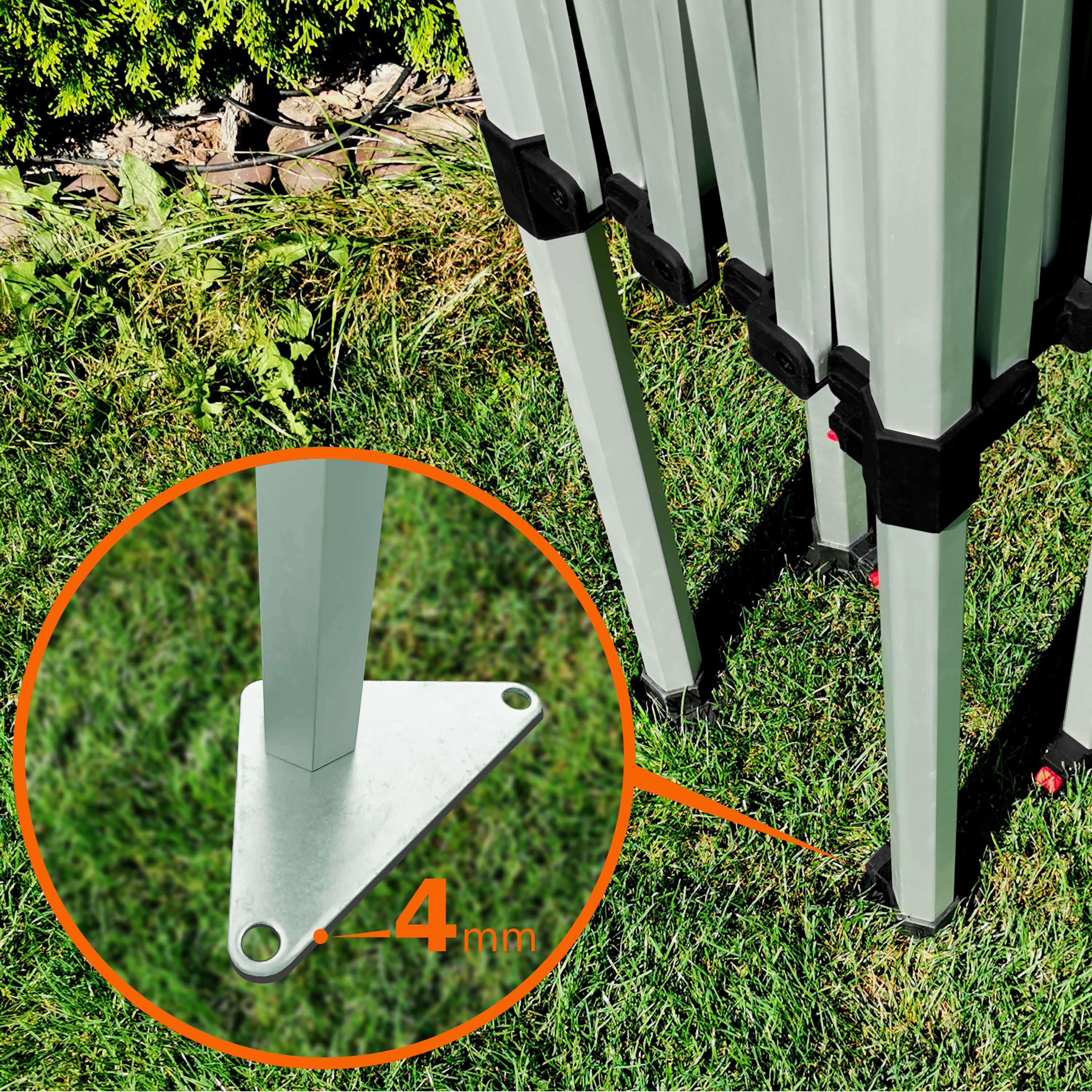 - Σταθερό προφίλ ποδιών: Εξαγωνικά προφίλ ποδιών με διάμετρο 45 mm εξασφαλίζουν εξαιρετική σταθερότητα αυτής της κήπου σκηνής, προστατεύοντάς την από ανατροπή.