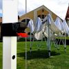 - Μη συμπυκνωμένο έδαφος (χλοοτάπητας, χώμα): Αγκύρωση με πασσάλους (συμπεριλαμβάνονται στη συσκευασία) και τεντωμένα σχοινιά.