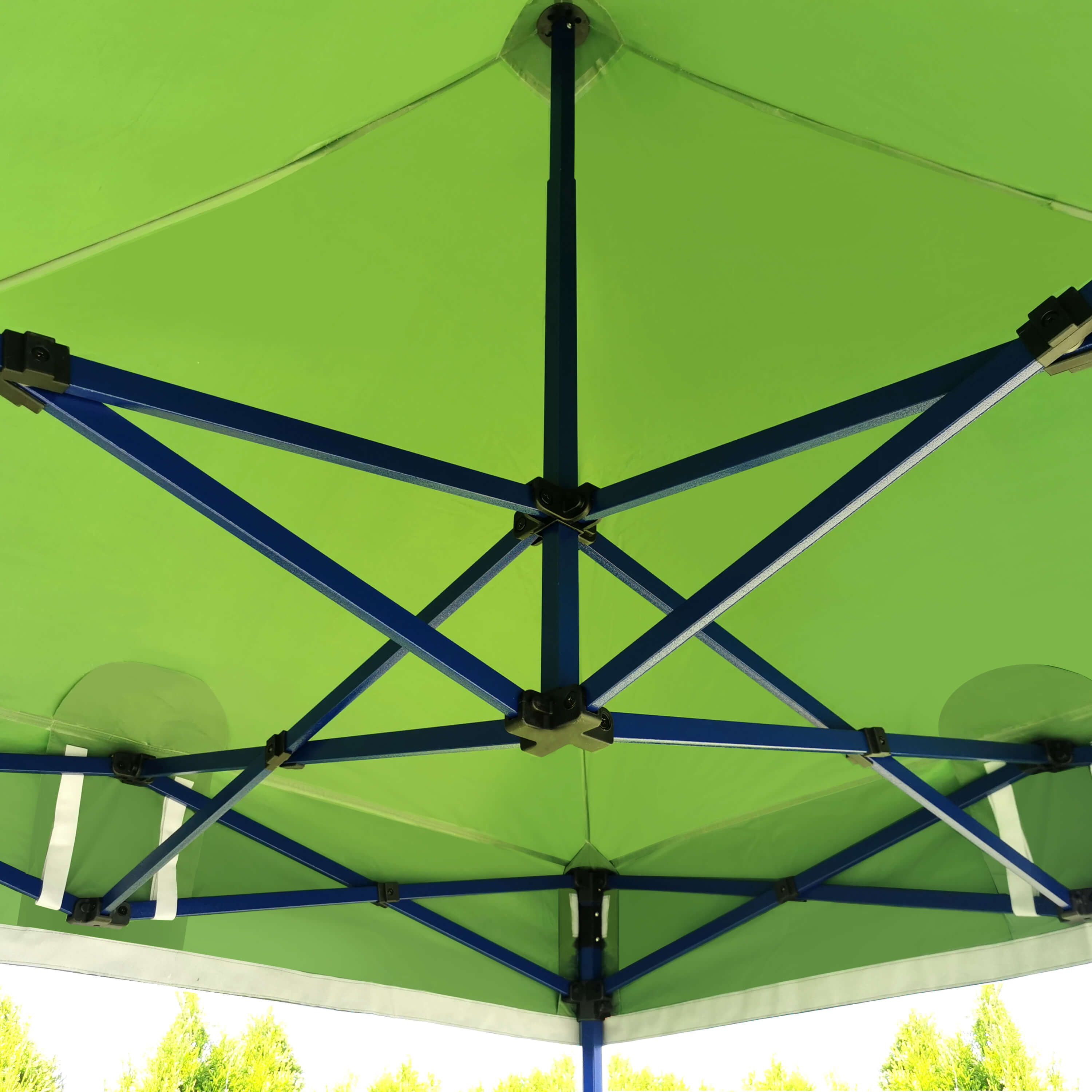 Η κατασκευή της οροφής έχει σχεδιαστεί με γνώμονα τη μέγιστη σταθερότητα και την άνεσή σας κατά την πώληση. Το πλαίσιο είναι ανθεκτικό, επιτρέποντάς σας να κρεμάσετε ελαφρύτερα εμπορεύματα απευθείας από το πάνω μέρος του πλαισίου σε άπνοια, διατηρώντας την τάξη στον πάγκο σας και βελτιστοποιώντας το χώρο. (Προειδοποίηση: Σε περίπτωση ανέμου δεν προτείνεται το κρέμασμα εμπορευμάτων για λόγους ασφάλειας.)