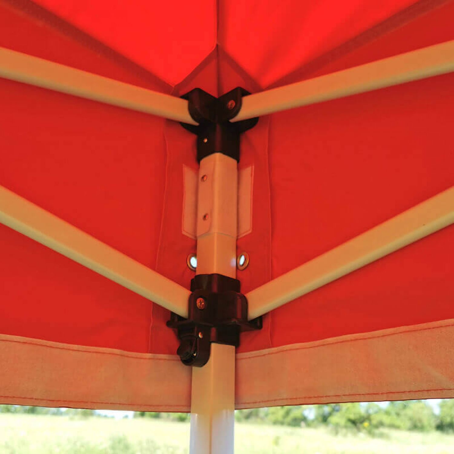 Ο σκελετός της οροφής έχει σχεδιαστεί με έμφαση στη μέγιστη σταθερότητα και την άνεσή σας κατά τη διάρκεια του event. Το πλαίσιο είναι εξαιρετικά στιβαρό, επιτρέποντάς σας, για παράδειγμα, να κρεμάσετε ελαφριά διακοσμητικά ή ενημερωτικό υλικό απευθείας στο πάνω μέρος της κατασκευής (σε συνθήκες άπνοιας), εξασφαλίζοντας τάξη και αισθητική. (Προσοχή: Σε ισχυρό άνεμο συνιστάται αυστηρά να μην κρεμάτε τίποτα για λόγους ασφάλειας.)