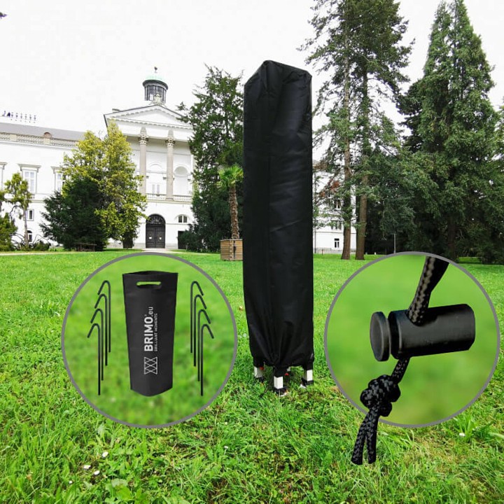 Η αντοχή και η διάρκεια ζωής του περιπτέρου διασφαλίζονται πλήρως μόνο με τη σωστή και ασφαλή αγκύρωση. Ισχύει πάντα ο κανόνας: το περίπτερο πρέπει να αγκυρωθεί σωστά! Χρησιμοποιήστε τους παρεχόμενους πασσάλους και σχοινιά. Σε σκληρές επιφάνειες απαιτείται η αγορά βαρών (σακούλες άμμου ή βάρη) για επιπλέον ασφάλεια. Το περίπτερο προορίζεται για βραχυπρόθεσμη και κινητή κάλυψη σε κανονικές καιρικές συνθήκες. Μετά τη χρήση στεγνώστε το και μην το αφήνετε χωρίς επίβλεψη.