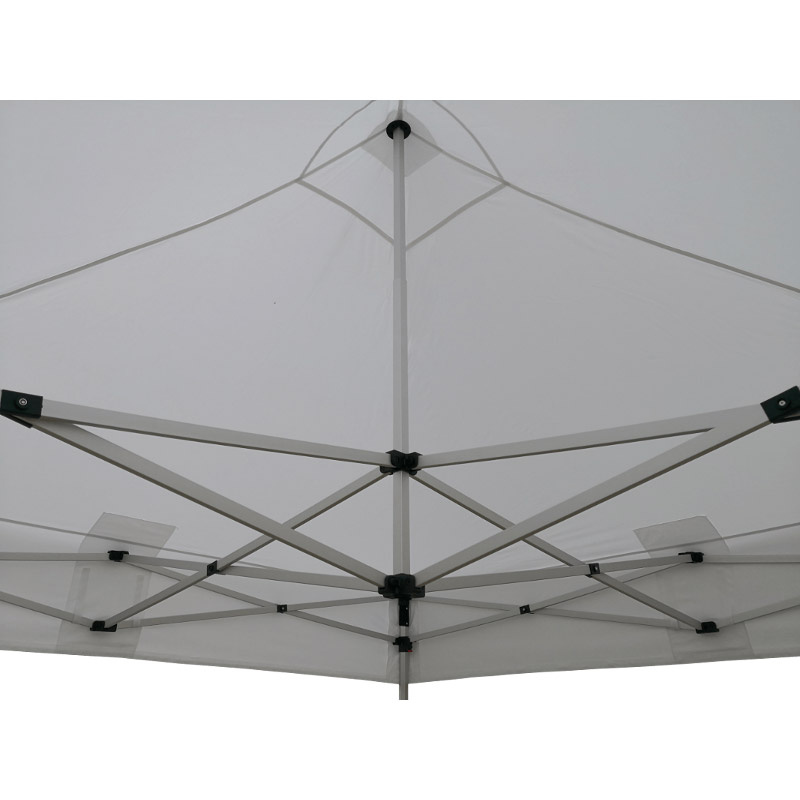Ψάχνετε ένα στέγαστρο που να αντέχει τον ρυθμό ενός αγωνιστικού τριημέρου; Ο στιβαρός σκελετός προσφέρει μέγιστη σταθερότητα και επιτρέπει το ασφαλές κρέμασμα φωτισμού για νυχτερινό service ή πανό χορηγών! Τέλεια τάση της οροφής (χωρίς συγκέντρωση νερού πάνω από ακριβό εξοπλισμό) εξασφαλίζουν 2 αυτορυθμιζόμενοι κεντρικοί στύλοι και τα ανώφλια της οροφής (15 × 25 mm, πάχος 1 mm) που εγγυώνται εξαιρετική φορτωτική ικανότητα.