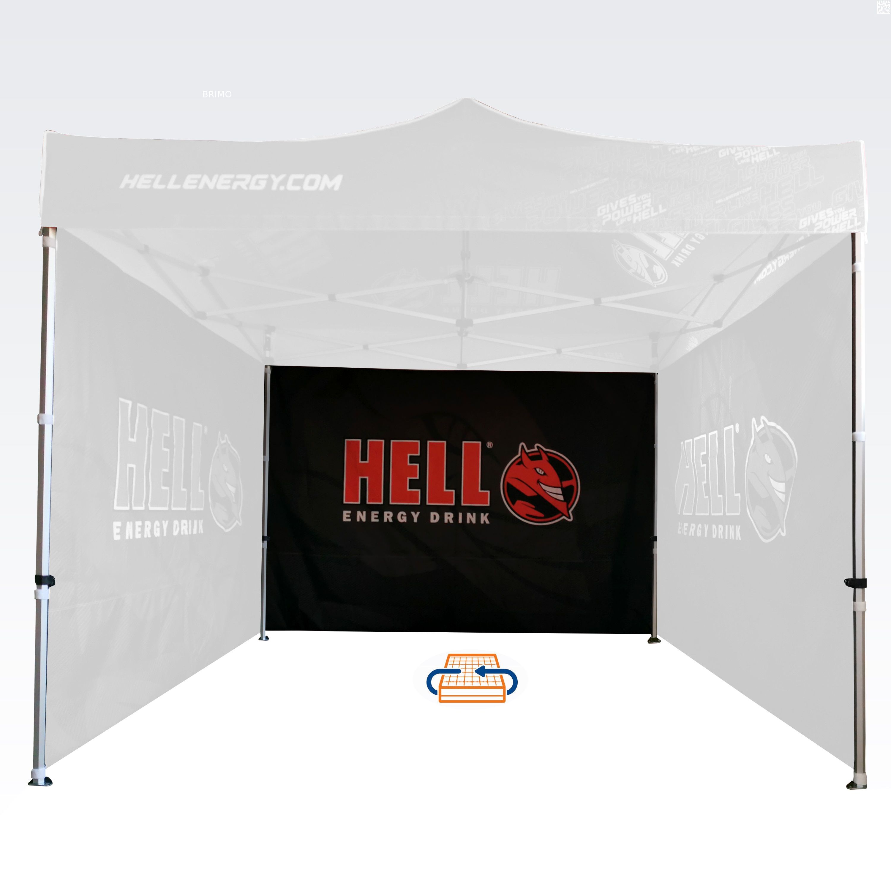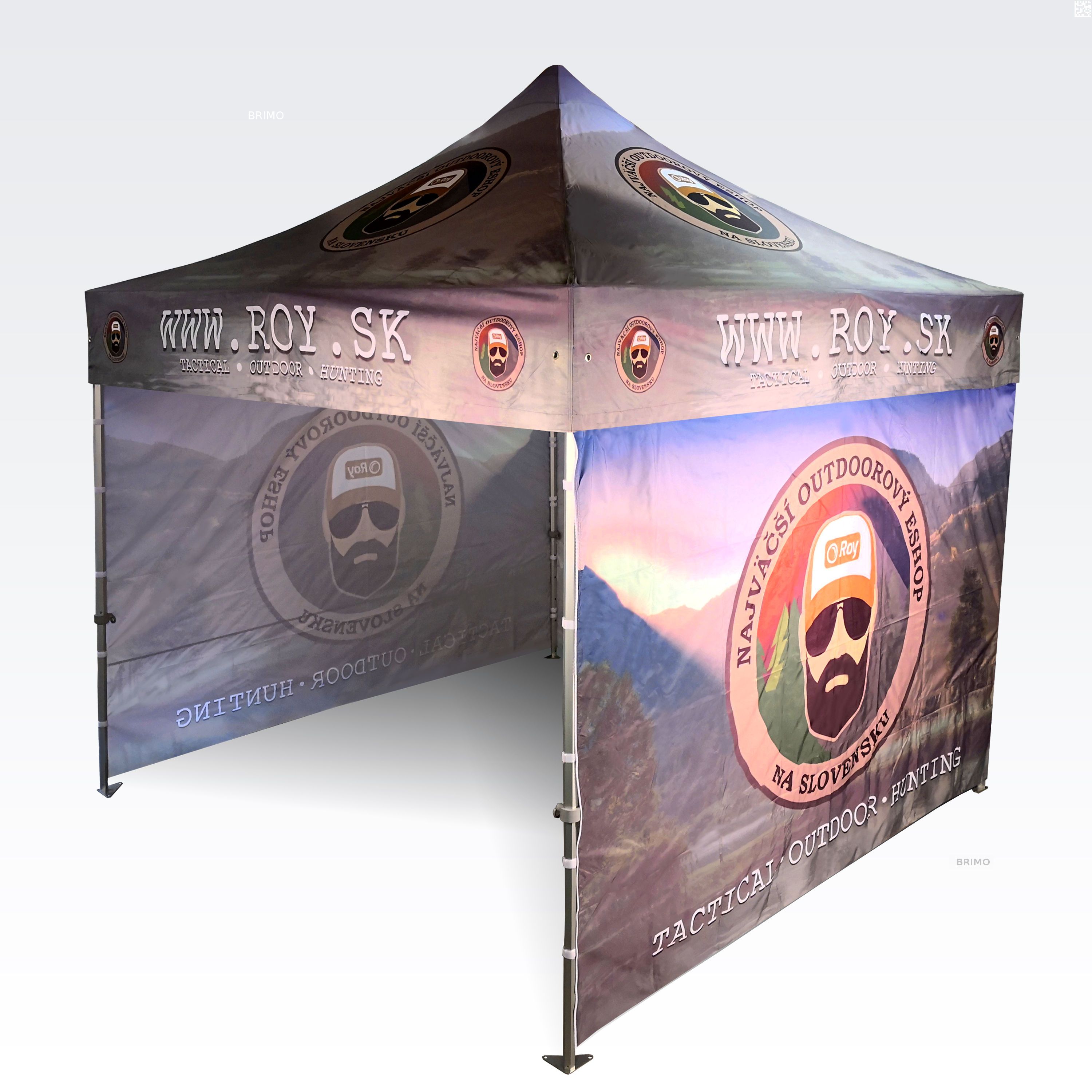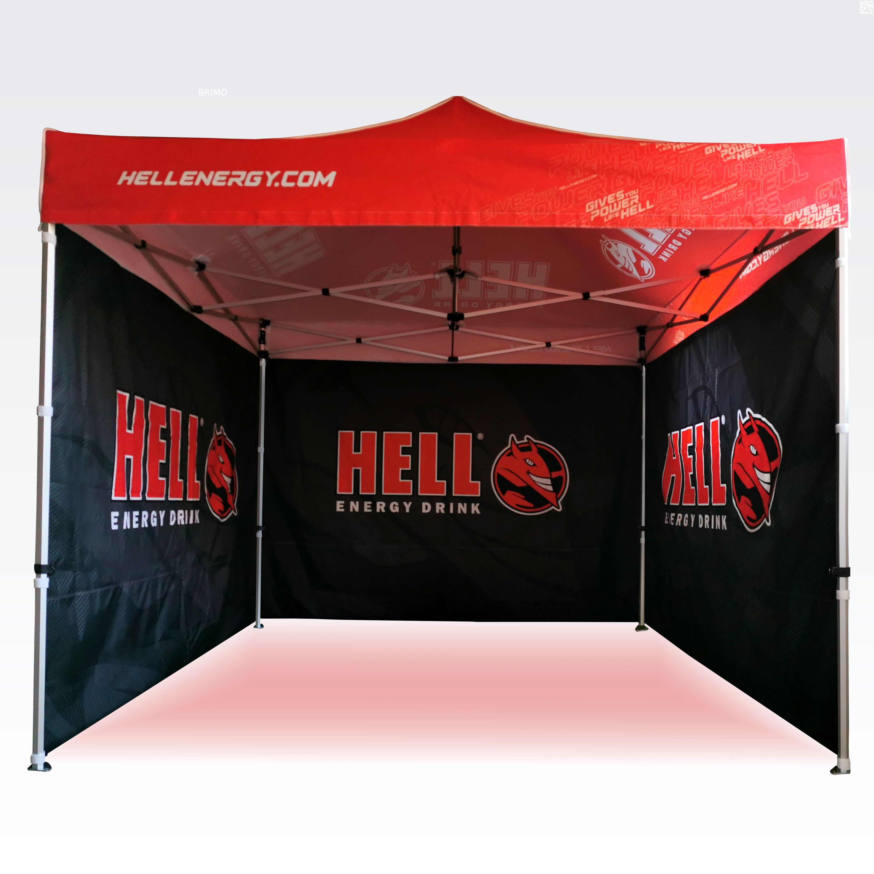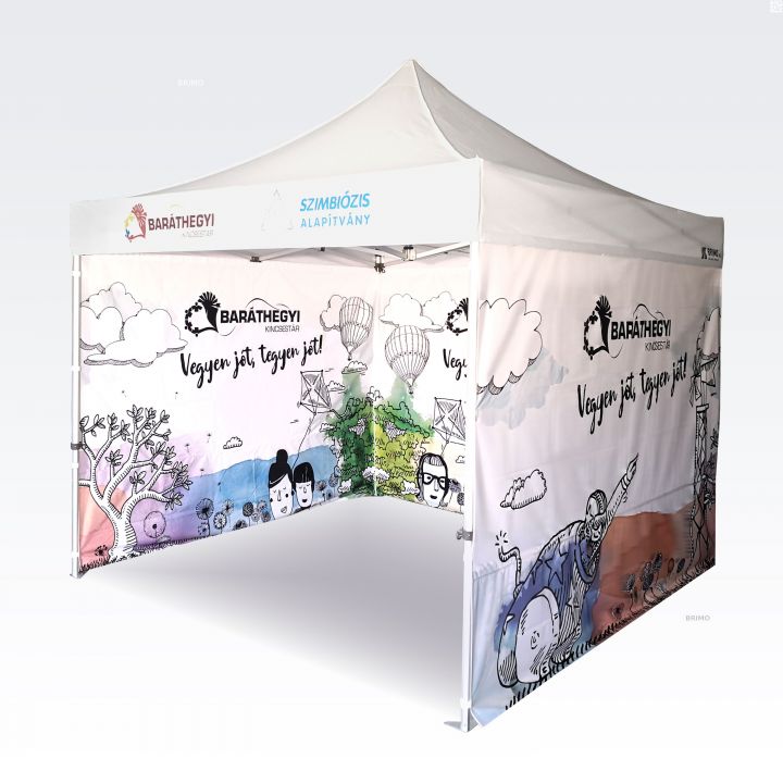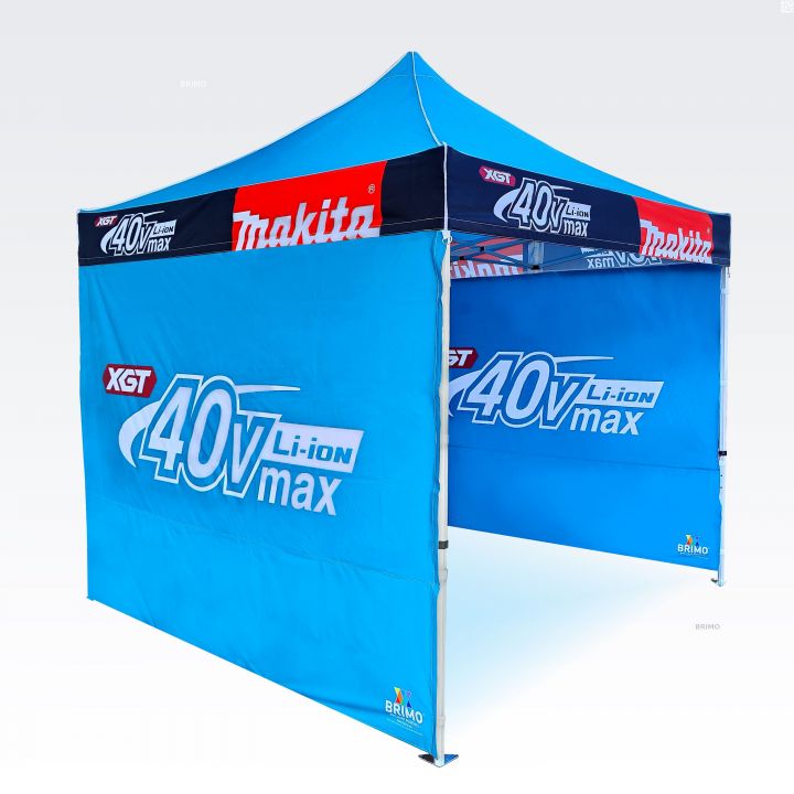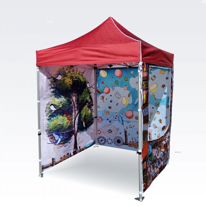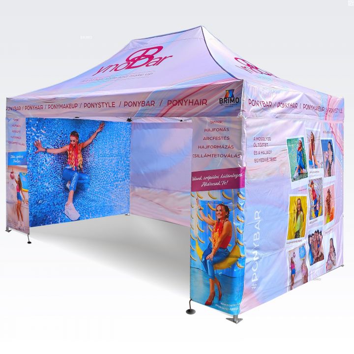 Διαφημιστικές τέντες με ψηφιακή εκτύπωση εξάχνωσης. Η εκτύπωση δημιουργείται μέσω μιας χημικής διαδικασίας, όπου το μελάνι διεισδύει απευθείας στη δομή του υφάσματος υπό υψηλή θερμοκρασία. Λογότυπα, κείμενα ή οποιοδήποτε είδος γραφικού μπορεί να εκτυπωθεί στην εσωτερική ή εξωτερική πλευρά της τέντας, σύμφωνα με τις προτιμήσεις του πελάτη.