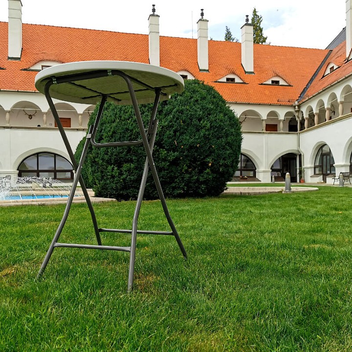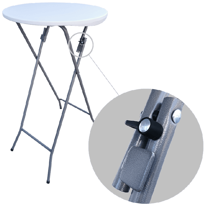 Εξαιρετικής τραπέζι μπαρ catering μπαρ με διάμετρο επιφάνειας 80 cm / 60 cm κατασκευασμένο από ανθεκτικό πολυαιθυλένιο σταθεροποιημένο με ακτινοβολία UV (HDPE) είναι ο ιδανικός σύντροφος σε οποιοδήποτε μέρος όπου οι άνθρωποι συγκεντρώνονται για καλό φαγητό και ποτό. Το ύψος του τραπεζιού μπαρ των 110 cm είναι ιδανικό για χρήση σε όρθια θέση. Η στιβαρή αναδιπλούμενη κατασκευή από ατσάλι αυτού του τραπεζιού μπις τροποποιεί τη σταθερότητα και την μακροχρόνια αντοχή του.